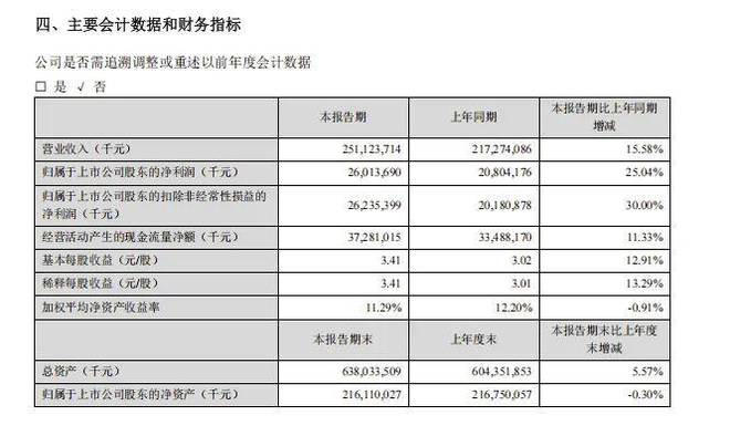 8月30日,美的集团发布2025年半年度报告。报告显示,公司2025年上半年营业收入为2511.24亿元,同比增长15.58%;归母净利润为260.14亿元,同比增长25.04%;扣非归母净利润为262.35亿元,同比增长30%;基本每股收益3.41元/股。