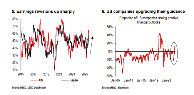 从自下而上的微观层面看,信号甚至更为明确。报告显示,主要股指的盈利预期在过去三个月大幅上调,其幅度通常只在经济周期的早期阶段才会出现。同时,美国上市公司自身也正在净上调其业绩指引。