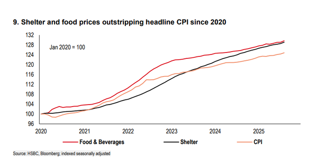 通胀压力:食品、饮料及住房等“非可支配”项目的通胀率远超总体CPI。