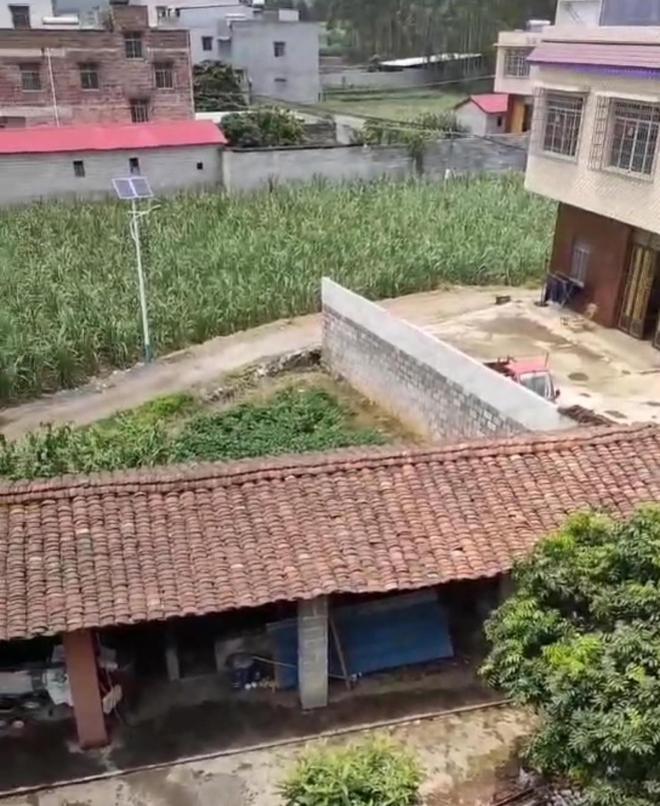 ▲被害人家的菜地与凶手何某乖家仅一墙之隔 受访者视频截图