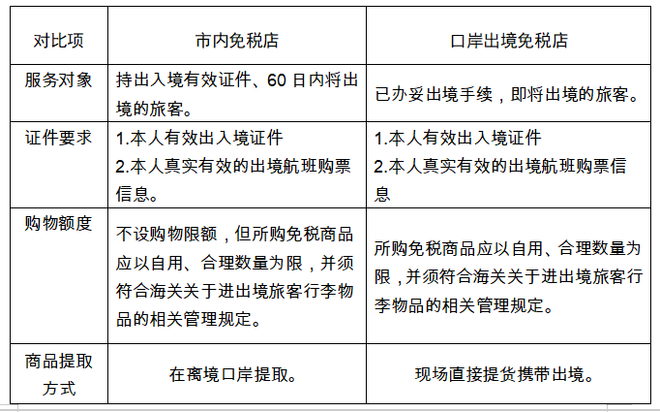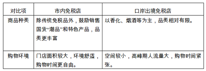 市内免税店与口岸出境免税店在服务对象、购物条件、商品体验等方面存在显著差异。