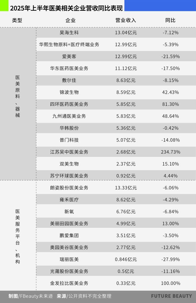 一边是医美企业集体承压,22家医美相关公司中,14家企业上半年营收出现同比下滑,"医美三剑客"之一的爱美客跌幅超20%,瑞丽医美更是陷入亏损;