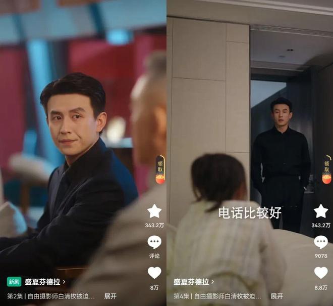 围绕《盛夏芬德拉》还有一点在于其是去年热播短剧《深情诱引》的番外,也有人物联动出现,这让短国的创作思路又打开了一层面,续写IP之外,创造一个"深情"帝国、构建一张庞大的关系网,也能起到不俗的产品化效果。