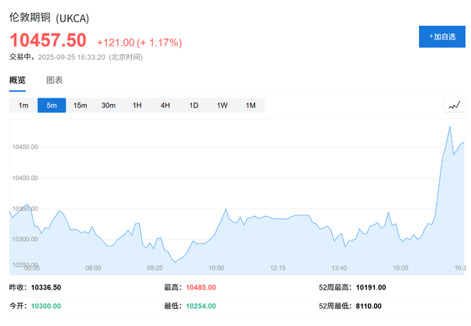 - 伦铜涨近1%,最高触及10457.00美元/吨,创2024年5月以来新高。