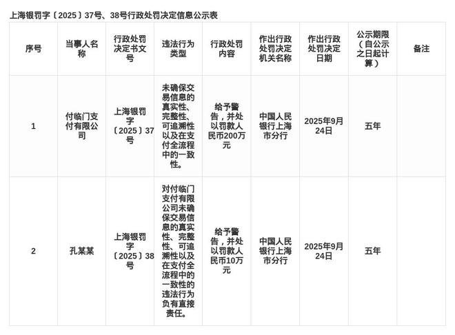 付临门支付遭罚200万,责任人被罚款曝光,罚款金额达十万
