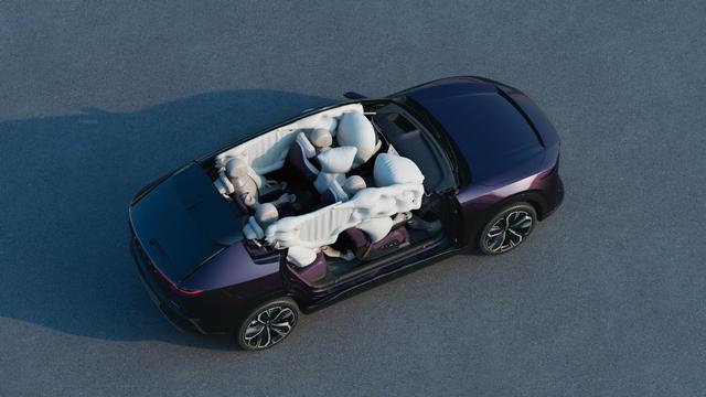 EZ-60全系标配了9个安全气囊,总容积370L,保护面积26500cm²,双腔中央气囊能防止前排乘员在侧面撞击中发生二次伤害,2米超长侧气帘从A柱覆盖到C柱,副驾采用代表行业最高水平的飞跃式气囊,能够在爆炸的瞬间避开大屏。电池系统采用8层防护架构,提前满足2026年电池安全国标(GB38031-2025)及欧洲标准。