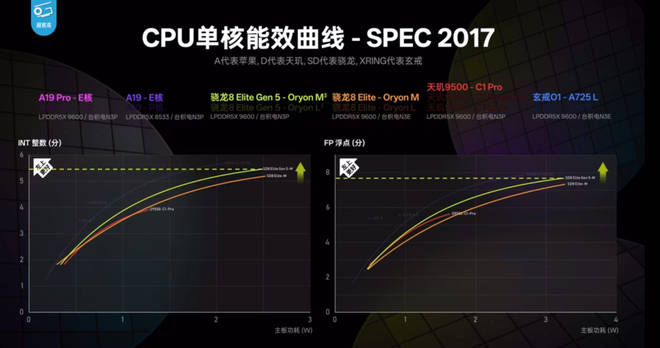 9月25日,@极客湾Geekerwan对新发布的第五代骁龙8至尊版进行了性能测试。一个比较令人震惊的结果是,在SPEC 2017套件上,作为一款今年上半年发布的芯片,玄戒O1的“性能核”能效表现逼近了刚发布骁龙8Gen 5,“能效核”表现甚至超过了后者。