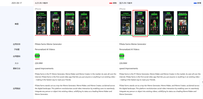 伴随版本更新,产品数据的增长一方面证明了《Piñata Farms Meme Generator》在继Meme之后再度把握住了AI这一新的流量增长窗口。另一方面,其以AI技术赋能产品满足用户提升产出效率需求的策略本身也得到了用户的认可。