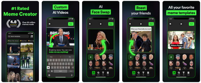 除应用命名上的巧思外,《Piñata Farms Meme Generator》在功能上同样直击欧美、特别是美国用户的痛点。其特有的“Face Swap”抠图功能,能够轻松地从照片中分离出人物头部,帮助用户制作目标人物极具辨识度的“大头贴”,再将这些大头贴替换一些经典场景中的人物头像以达成恶搞或讽刺的效果。而这种“大头贴换头”的玩梗方式也是美国用户最喜爱,同样也是在社媒平台最具流量的形式之一。