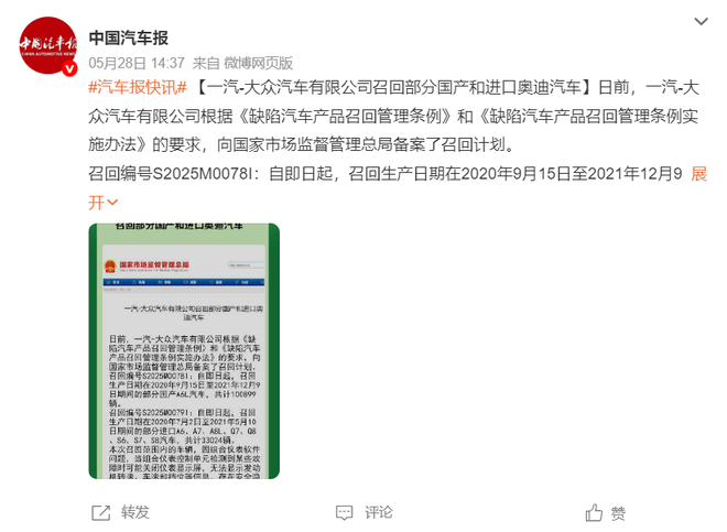 而截至发稿,一汽奥迪未就此事进行回应。