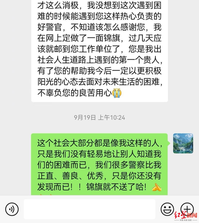 邱华华说,在这次警情处置中,他看到了当初那个自己和无数伸出的援手。他在短信中回复小王:“这个社会大部分都是像我这样的人,只是我们没有轻易让别人知道我们的困难而已,我们很多警察比我正直、善良、优秀,只是你还没有发现……”