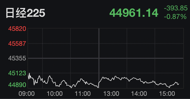 亚洲股市方面,日经225下跌0.89%,报44940.87,韩国综指上涨1.49%,报3436.99,富时海峡指数上涨0.23%,报4274.9。