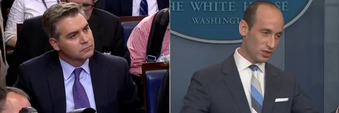 (2017年,Miller与CNN记者就美国移民问题进行了辩论,来源:视频截图)