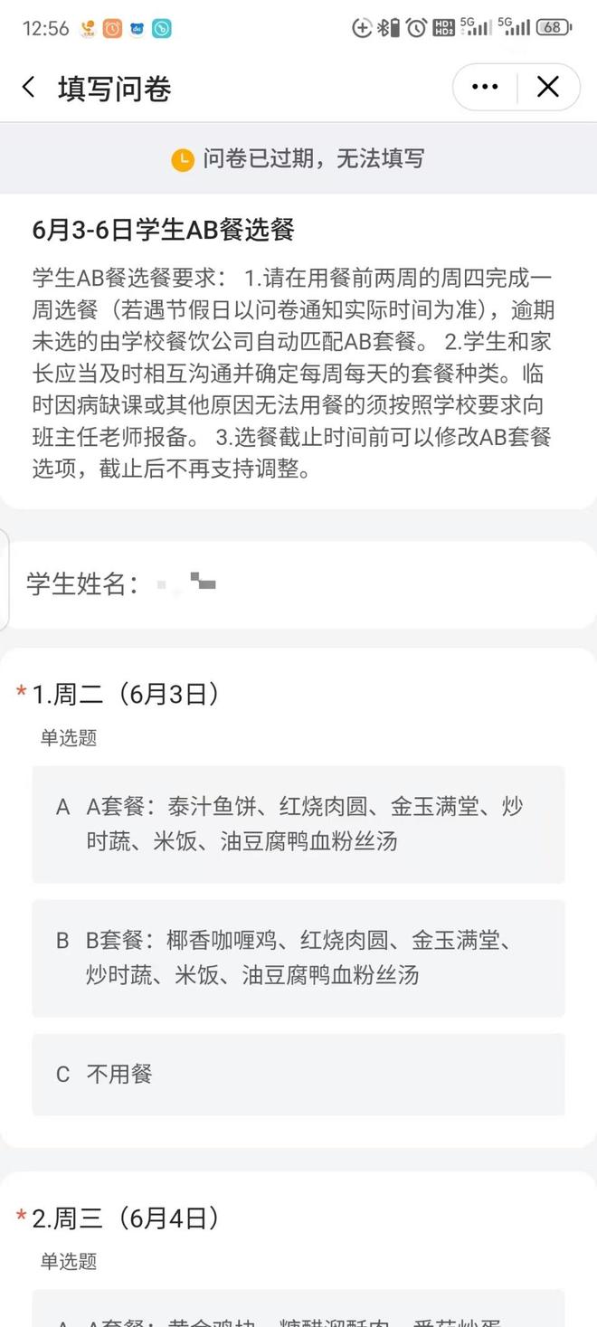 其实学校也会定期发午餐问卷调查,可这问卷时效性强得有些离谱 —— 不到 24 小时就过期,稍不留意就错过了填写时机。
