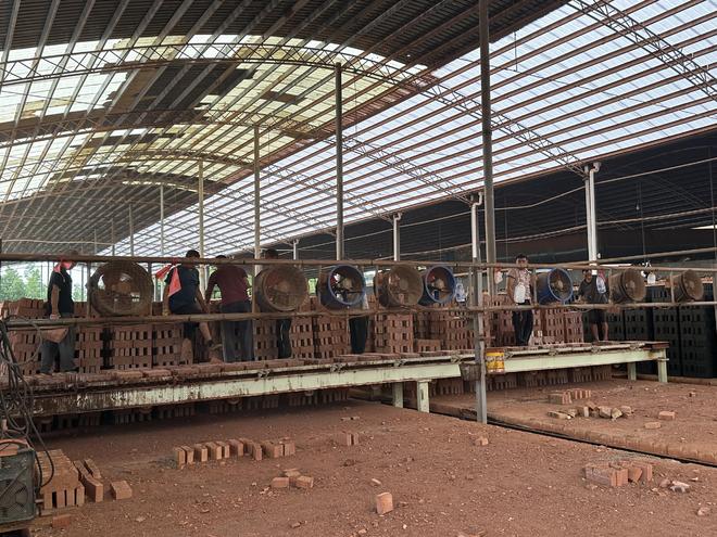 装砖的上车区域,头顶上是铁皮,虽说用来遮阳遮雨,但夏天接近40度高温下,在铁皮底下就相当于在蒸笼里。地表的温度、刚出炉的新鲜成品砖的温度,多重叠加,那个热浪真的很难形容,人站到砖面前,呼吸都困难。