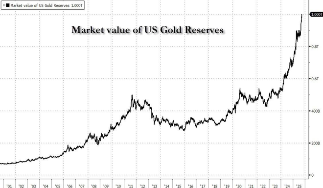 美国黄金储备市值首次突破1万亿美元,这重新点燃了市场关于美国可能重估其黄金储备的猜测。