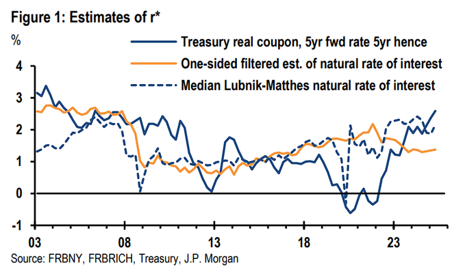 关于中性利率(r)的争议:Miran在11页多的演讲中提到r多达36次,但摩根大通指出,生产率增长加速实际上应该导致r上升,而非下降。一个经济学逻辑是,对未来收入增长更快的预期会促使人们增加当前消费,因此实际利率必须上升以激励推迟消费。![]()