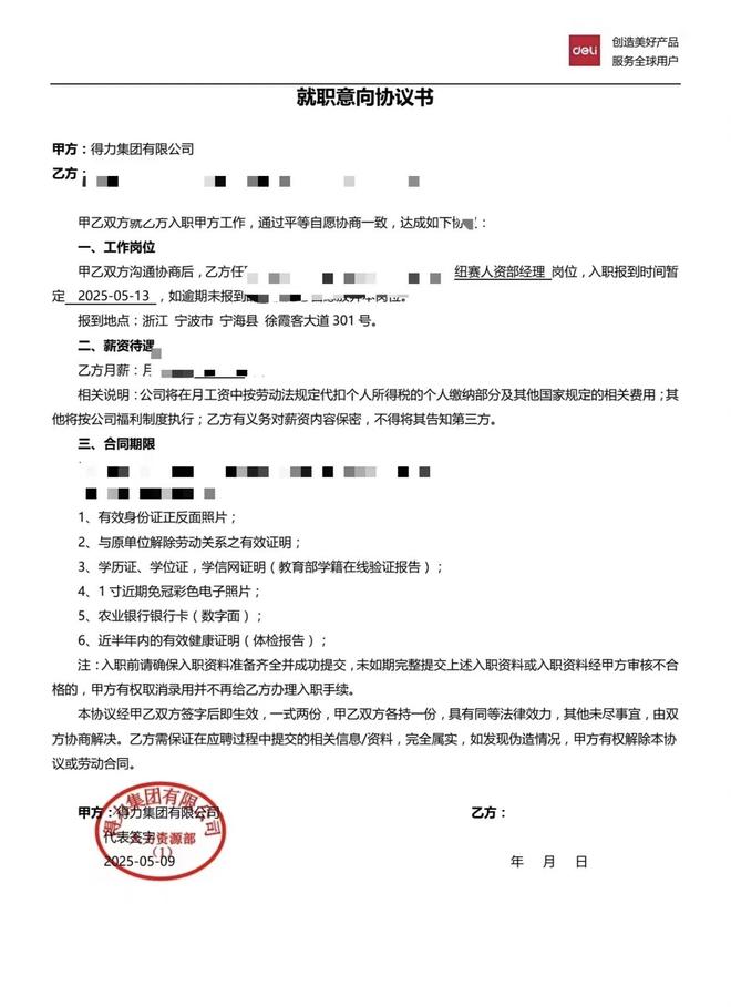 此前,该网友发帖称,今年5月初经历了得力的三轮面试(2轮线上,1轮现场),通过面试并收到offer,岗位为上海公司HRBP,后被通知到宁波总部报到培训。报到当天,得力一名HR接待后,网友主动表示自己腿部有问题,并无影响工作的情况。然而,当天下午这名HR就委婉表示让其自己主动离职,并让该网友发微信给他:因为不适应,主动离开。