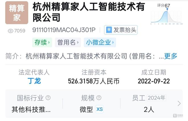 但通过天眼查APP发现,这家公司早在2022年9月就已经成立,2025年6月9日前公司名称还叫“北京精算家技术发展有限公司”。