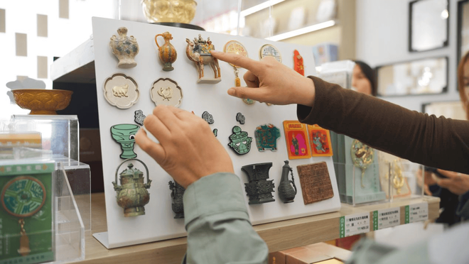 更令我惊喜的是,商场一楼新开了陕西历史博物馆和兵马俑的官方文创店。对于没预约上陕历博的游客来说,无疑是福音。不仅能把"文物"带回家,还能盖上博物馆的专属印章,让旅行的记忆多了份仪式感。