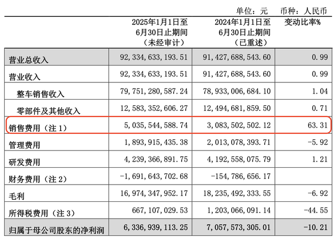 半年报显示,上半年,长城汽车在销售方面加大了投入,其销售费用达50.36亿元,同比大幅攀升63.31%。