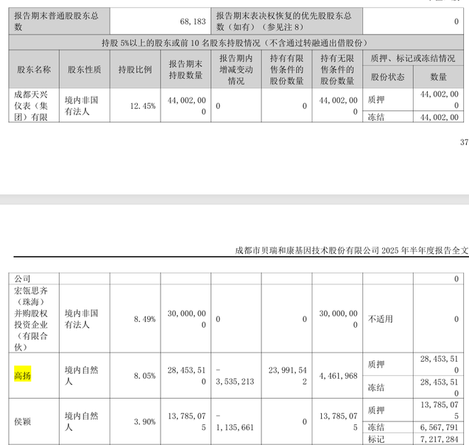同时,截至2025上半年,高扬为贝瑞基因排名第三的大股东。本次股份权益变动后仍在前十股东行列中。同时,高扬还是贝瑞基因现任董事长总经理。