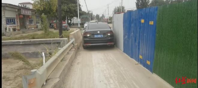 红星新闻记者从村民提供的视频看到, 道路被围挡挤占,变得狭窄。一辆车在其中行驶,两侧空间局促,通行十分困难,容易剐蹭,给驾驶员带来很大挑战。