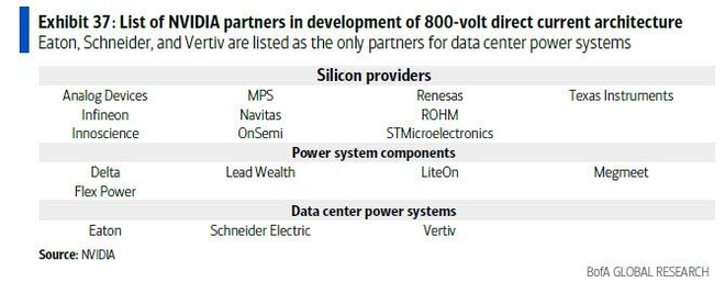 英伟达已明确表示,其800V直流架构将与维谛(Vertiv)、伊顿(Eaton)等行业领导者合作开发,这再次印证了 incumbents(在位者)在行业标准变革中依然占据核心地位。