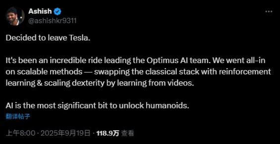 不过,2025年9月Optimus AI核心团队成员Ashish Kumar已离职并加入Meta,可能对特斯拉的技术整合进度产生影响。