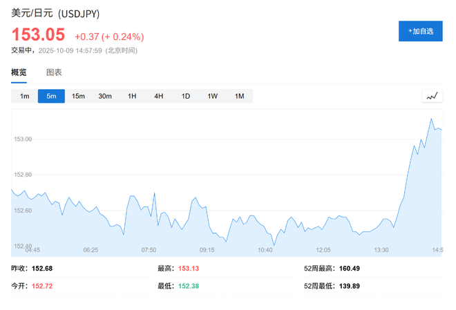 日本新任首相高市早苗的经济政策立场引发市场对"新安倍经济学"的预期,推动日元汇率跌破153关口,重新激起美日之间关于汇率政策的争议。