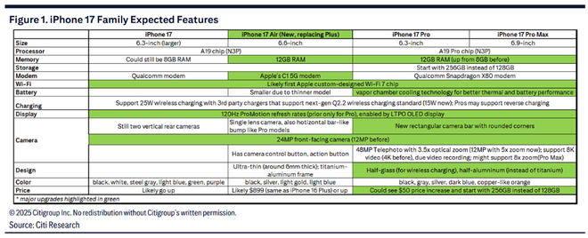 花旗亚洲供应链调研显示,预计iPhone 17系列2025年的出货量预期为8200万部,相比iPhone 16的8100万部仅小幅增长。