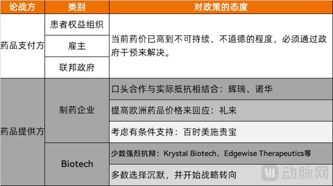 大型制药企业管线更加多元化、现金流状况较好,因而其表态更加温和。而Biotech企业的反应则更为激烈。