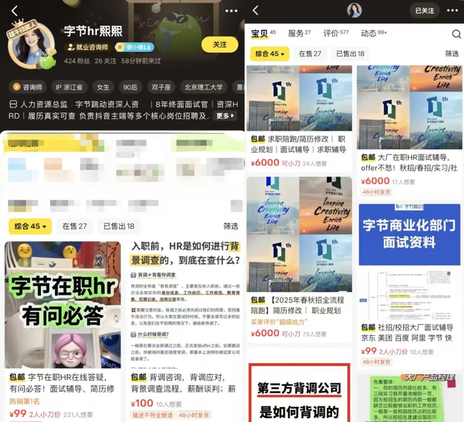 记者调查发现,这类所谓的"求职导师"通常不会局限于单个平台,而是通过构建账号集群来扩大影响力和规避风险。例如在某平台自称"字节hr熙熙",在另一平台则更名为"沐熙子学姐"。