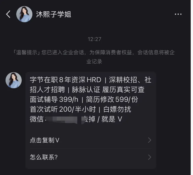 为了解具体服务内容,蓝鲸记者以求职者的身份联系到这位导师。