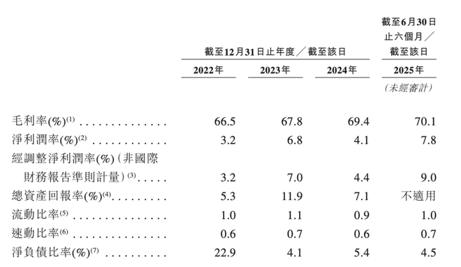 在毛利层面,自然堂的毛利率持续改善,从2022年的66.5%上升至2025年上半年的70.1%,但并未转化为稳定的净利率。2022年到2025年上半年,其净利润仅为3.2%、6.8%、4.1%和7.8%。