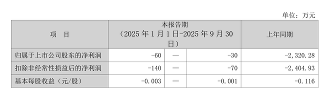 10月14日晚间,珠海市乐通化工股份有限公司(证券简称:乐通股份,股票代码:002319)发布业绩预告,预计2025年前三季度归属于上市公司股东的净利润为-60万至-30万元,上年同期为-2320.28万元;预计扣除非经常性损益后的净利润为-140万至-70万元,上年同期为-2404.93万元。