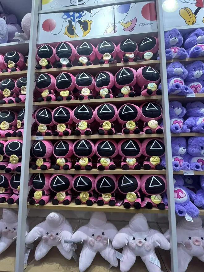 沙特名创优品里售卖的《鱿鱼游戏》中"神秘人"形象玩偶。