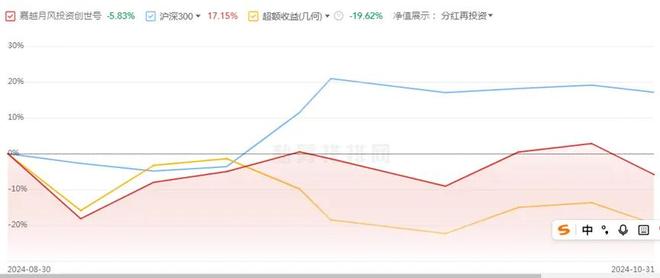 2024年的“924行情”就是一例,在大盘指数强势上攻之际,他的产品净值却表现得如同“置身事外”。(如下图)