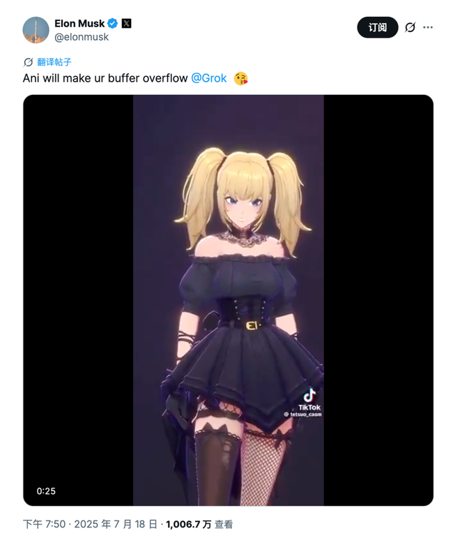 色情内容的加入帮助 Grok 获得巨量增长。过去几个月来,马斯克不遗余力地在 X 上转发人们对 Grok 虚拟伴侣的喜爱,在最早推出的女性角色 Ani 大受欢迎之后,他们顺势也推出了男性角色 Valentine。