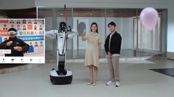 发布直播中,工程师使用超视距遥操G2机器人射破气球。
