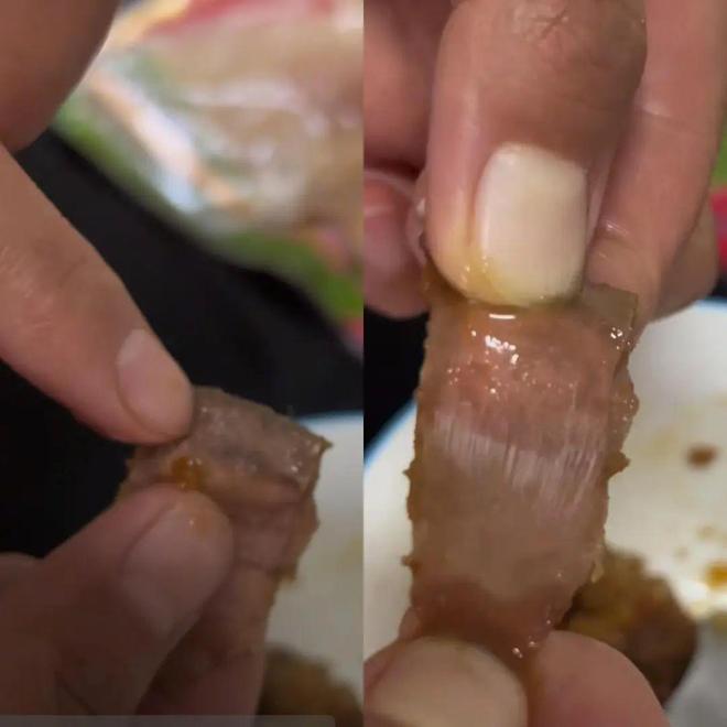 当时,有消费者在社交平台发布视频,称自己在食用来伊份的蜜枣粽时,咬到了一块疑似带血的创可贴,棕褐色的创可贴边缘还沾着糯米,画面冲击力极强。