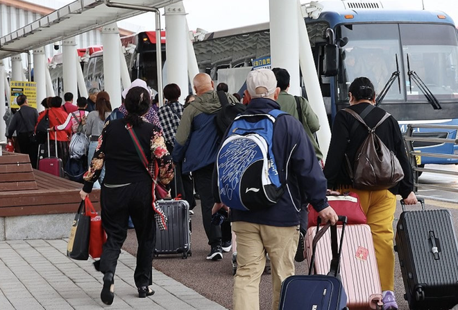 ▲中国团体游客在仁川港入境韩国