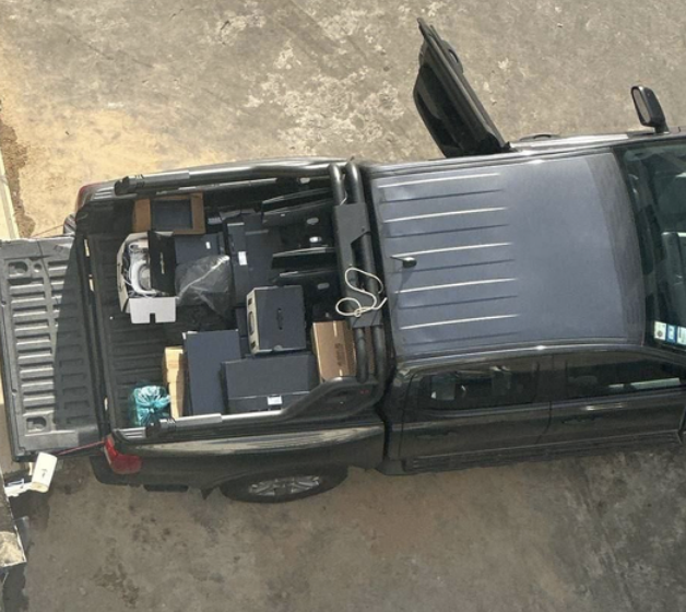▲图像显示,诈骗团伙的电脑等设备被搬上了货车