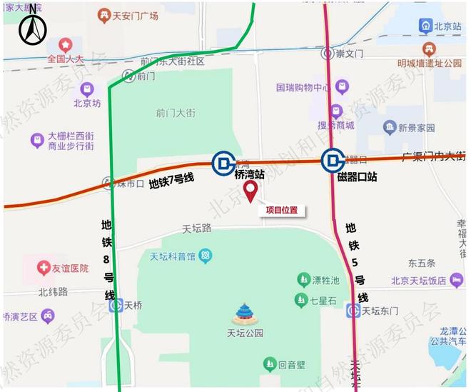地块位置和配套非常不错。邻近7号线桥湾站,北边还挨着前门历史街区,和天安门广场的直线距离也就1公里左右,南侧是天坛公园。周边生活配套丰富,邻近协和、同仁、友谊等多家三甲医院,2公里范围内还分布着崇文门商圈、前门商圈、王府井商圈等多个商圈。
