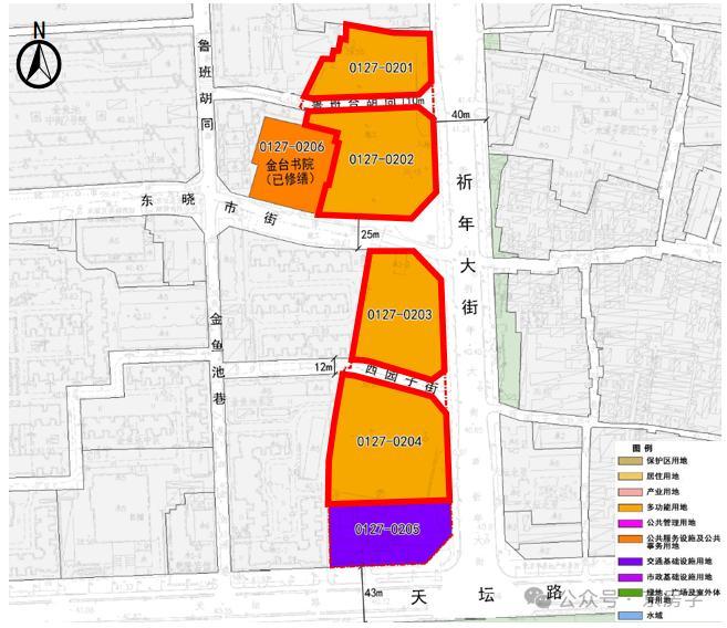 位置最核心的祈年大街路西危改工程项目,位于东城区天坛街道,紧邻珠市口东大街。根据规划,地块用途为F1住宅混合公建用地,用地规模2.27公顷,地上建筑面积为2.5万平方米。共被分成了6个小地块,其中住宅用地占了4个。