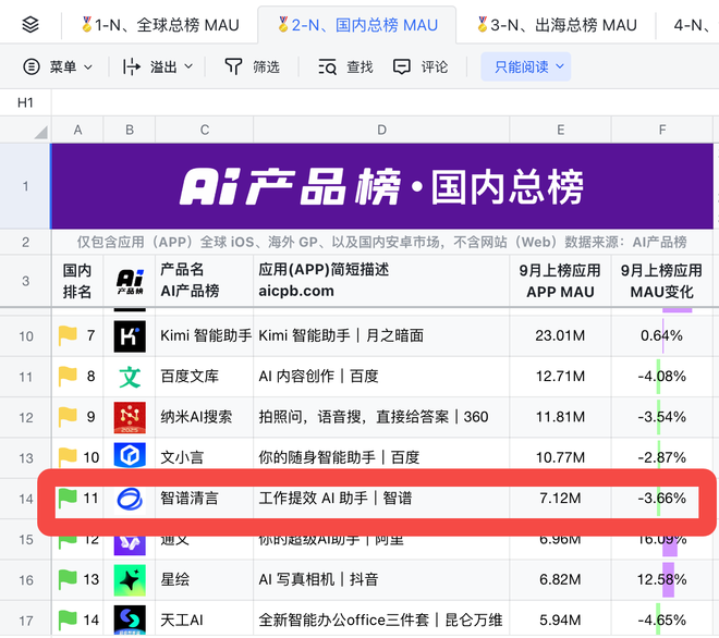 目前胡云华职位是否会调整也尚未可知。不过,可以确定的是,目前智谱正在押注另一款产品Z.ai。AI产品榜显示,智谱 Z.ai最近几个月增长较快,8月347万月访问量,增速 219.79%,创全球增速榜第一名。