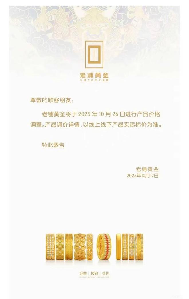 老铺黄金年内第三次涨价,多款热销产品断货潮来袭