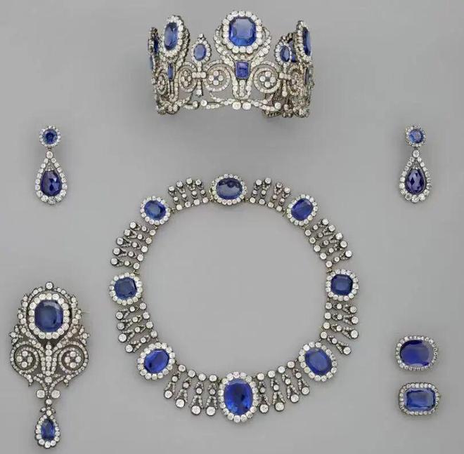 玛丽-阿梅莉王后与奥尔唐斯王后的冠冕、蓝宝石项链及蓝宝石耳环