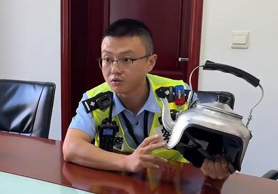 男子戴创意炊壶头盔上路被查,交警称不符标准,不能上路佩戴