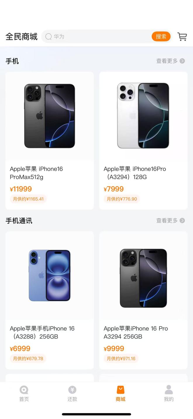 蓝鲸新闻登录全民钱包旗下商城查看,与大部分贷款平台的自营商城如出一辙,全民商城同样存在商品价格虚高的问题。如iphone16ProMax512g版本,淘宝京东等报价在9000多元,全民商城报价为12000元;iphone16Pro256g版本,淘宝京东等报价在8000元出头,全民商城报价为10000元。